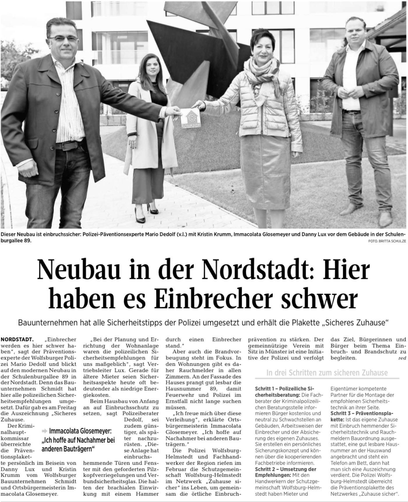Bauunternehmen hat alle Sicherheitstipps der Polizei umgesetzt und erhält Plakette "Sicherers Zuhause"
