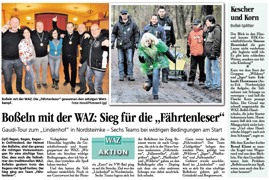 Klar, dass auch die Teilnehmer des traditionellen WAZBoßelns gestern trotz des Regens viel Spaß hatten. Der Sieg ging ans Team ?Fährtenleser?.
