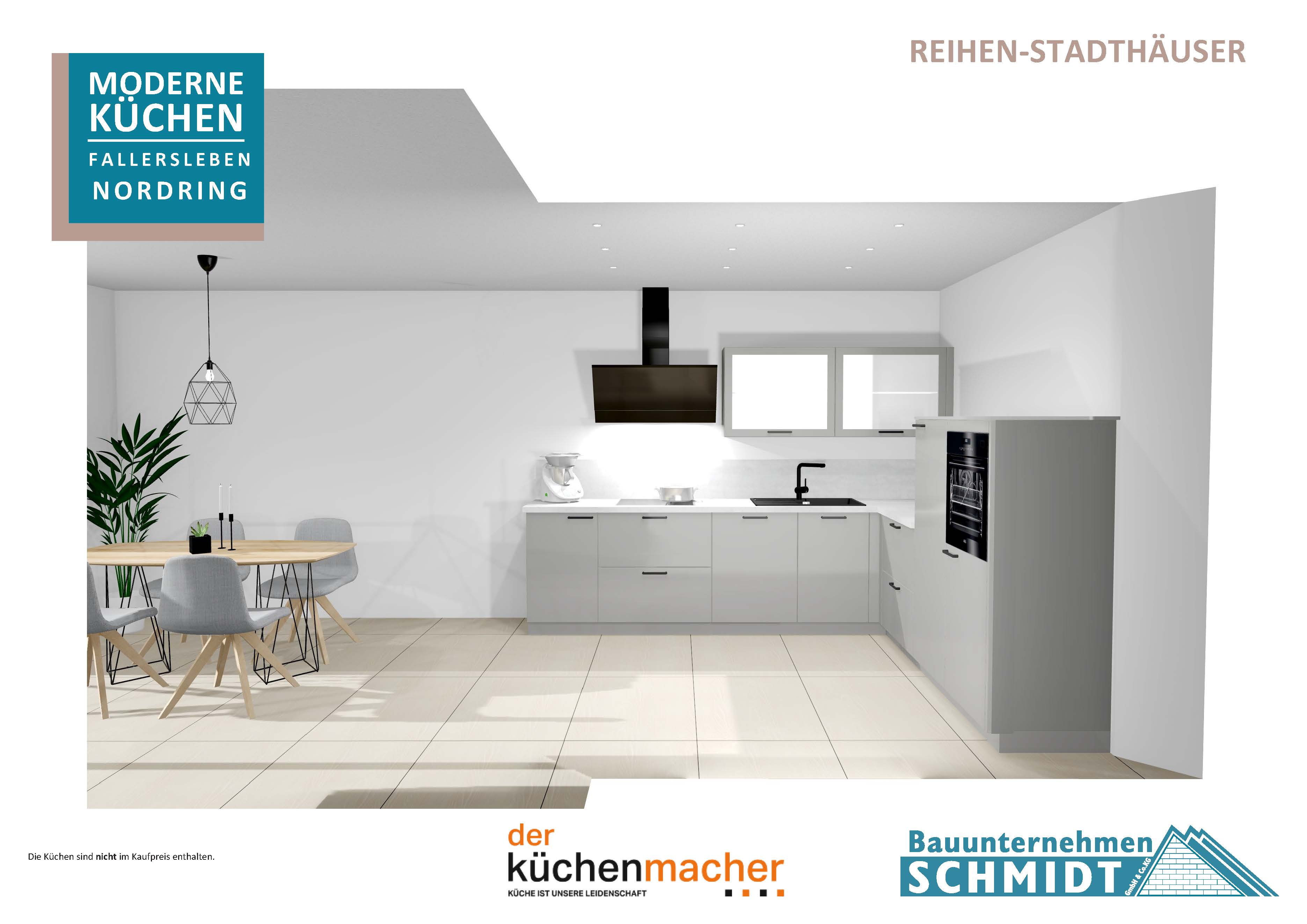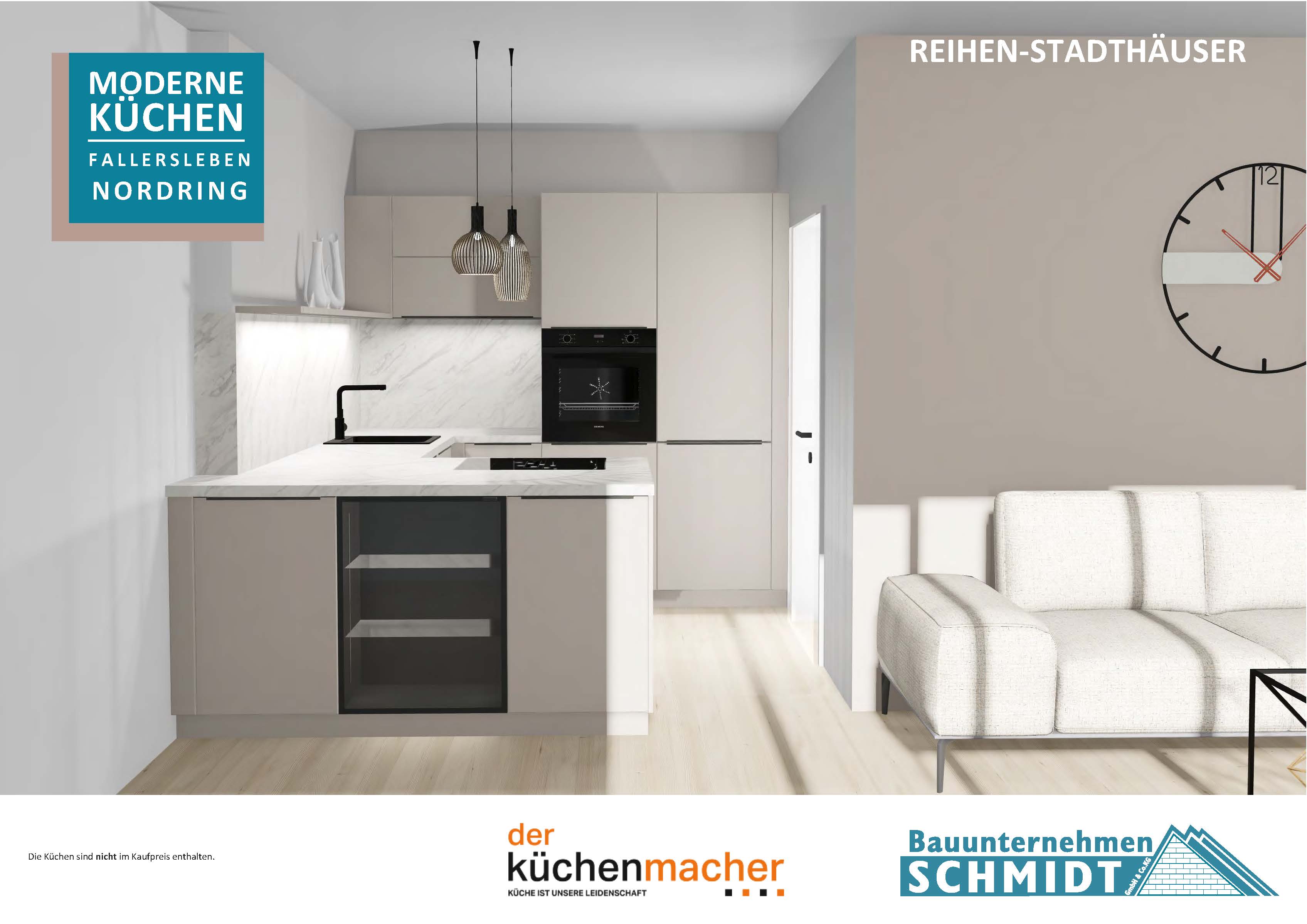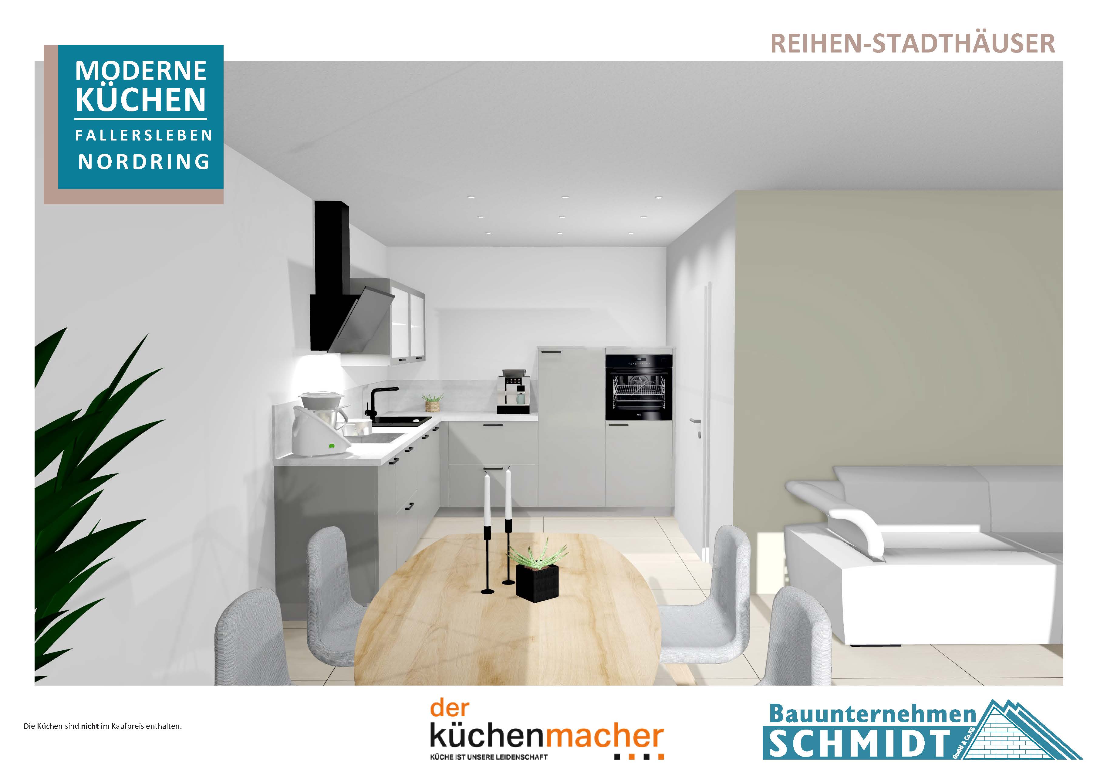 RH3 (Nordring 16c) ist als Musterhaus bereits mit einer Musterküche von "Der Küchenmacher" und mit Bodenbelag "ExponaLiving" ausgestattet (siehe PDF-Dateien), diese Mehrausstattung ist nicht im Kaufpreis enthalten und wird beim Kauf separat abgerechnet! Somit wäre RH03 aber sofort bezugsfertig! Das RH02 (Nordring 16b) und RH04 (Nordring 16e) sind bezüglich der Bodenbelags- und Küchenwahl frei, in Eigenleistung ausführbar oder auf Wunsch über uns gegen Mehrpreis dazu buchbar - sprechen Sie uns gern an!