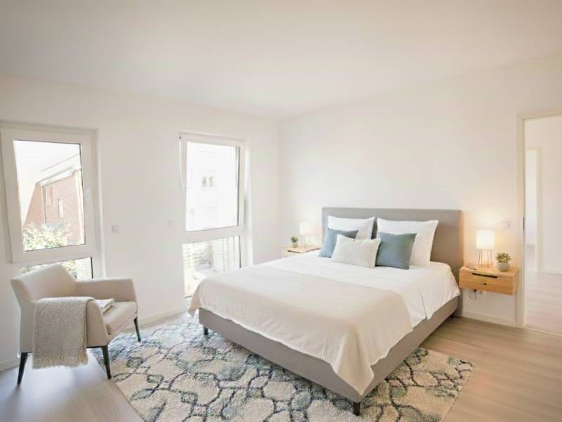 RH3 (Nordring 16c) ist als Musterhaus bereits mit einer Musterküche von "Der Küchenmacher" und mit Bodenbelag "ExponaLiving" ausgestattet (siehe PDF-Dateien), diese Mehrausstattung ist nicht im Kaufpreis enthalten und wird beim Kauf separat abgerechnet! Somit wäre RH03 aber sofort bezugsfertig! Das RH02 (Nordring 16b) und RH04 (Nordring 16e) sind bezüglich der Bodenbelags- und Küchenwahl frei, in Eigenleistung ausführbar oder auf Wunsch über uns gegen Mehrpreis dazu buchbar - sprechen Sie uns gern an!