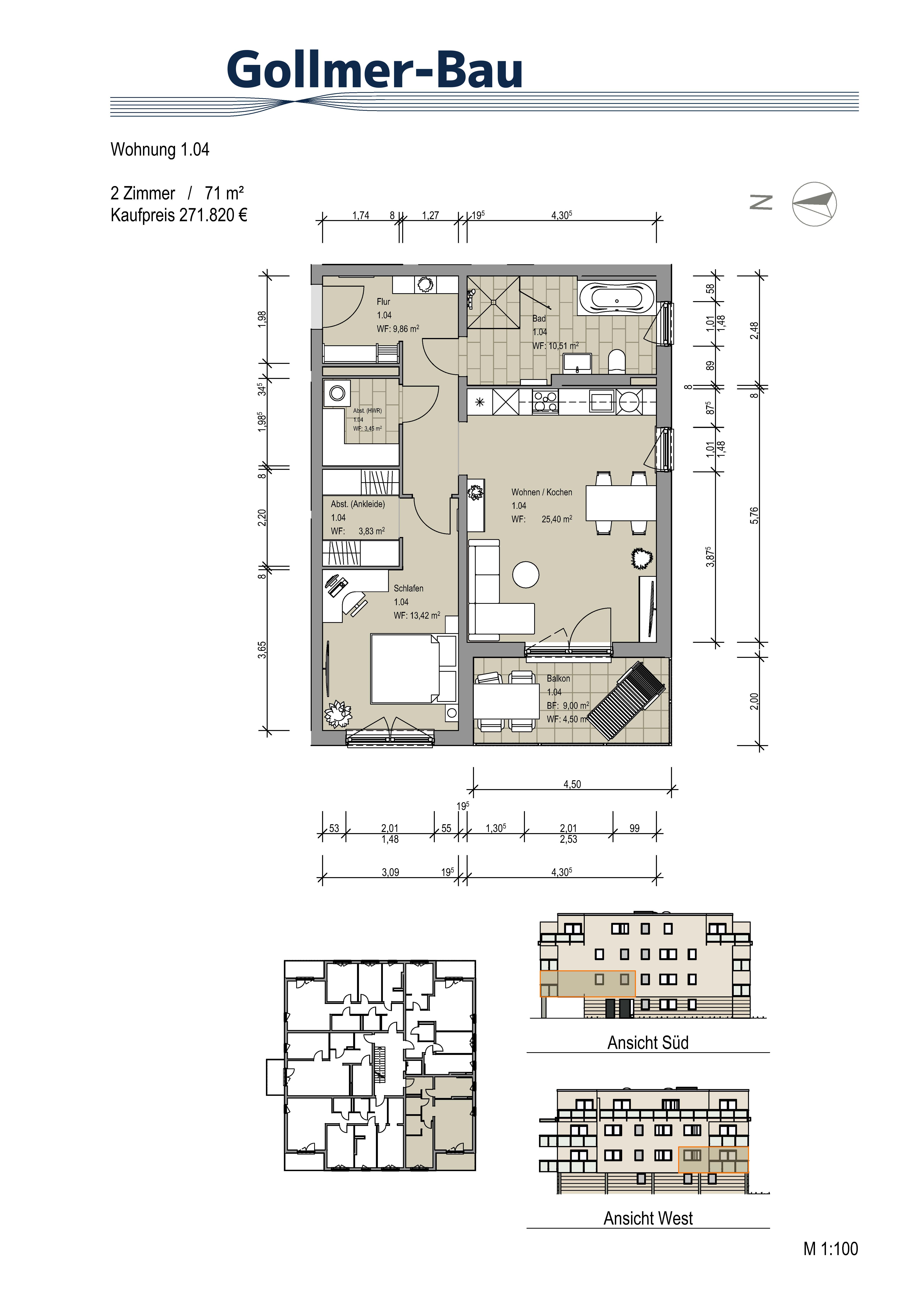 ETW 1.04 1.OG | 71,0m² | 2 Zimmer | 271.820 € mit Balkon