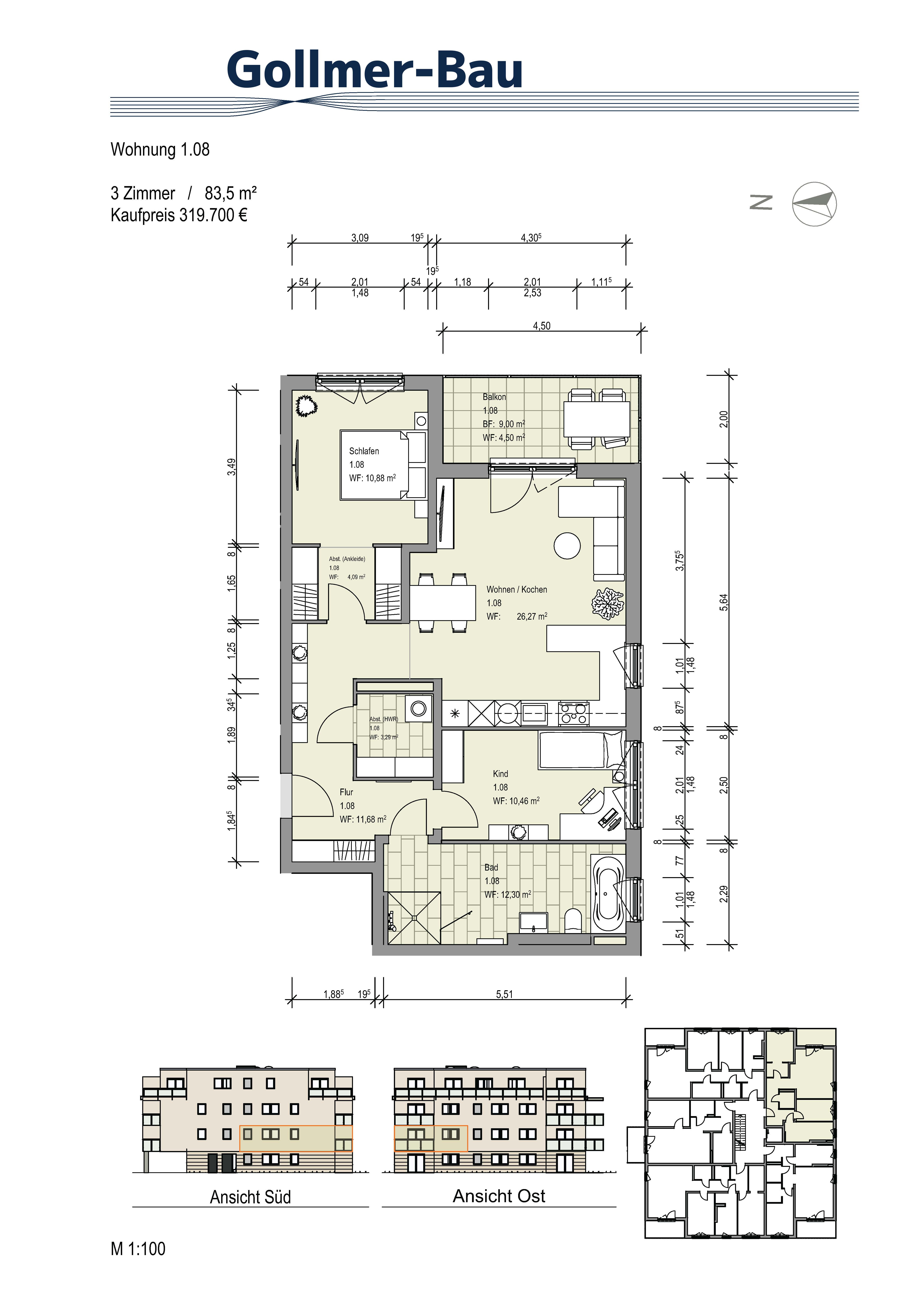 ETW 1.08 1.OG | 83,5m² | 3 Zimmer | 319.700 € mit Balkon