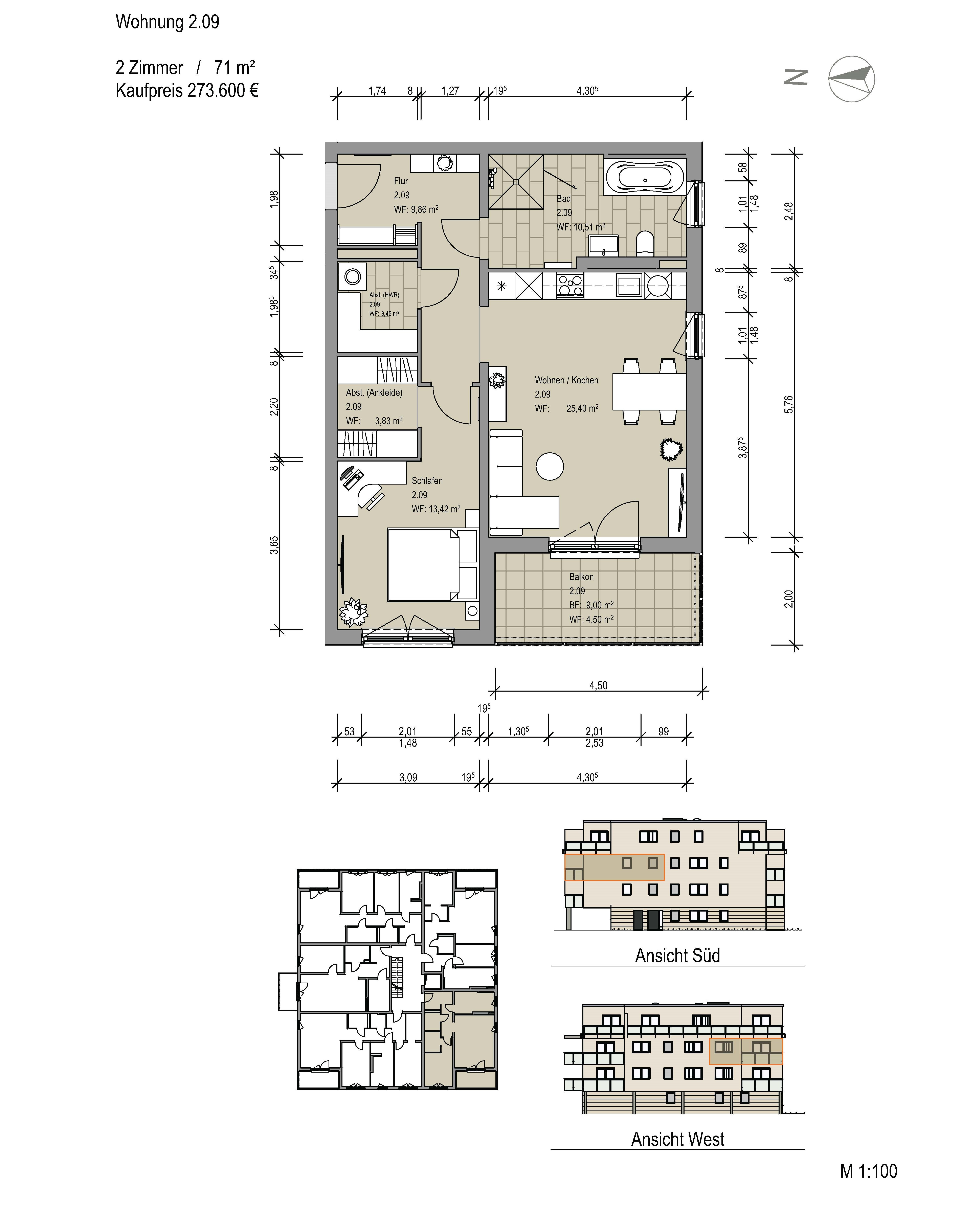 ETW 2.09 2.OG | 71,0m² | 2 Zimmer | 273.600 € mit Balkon
