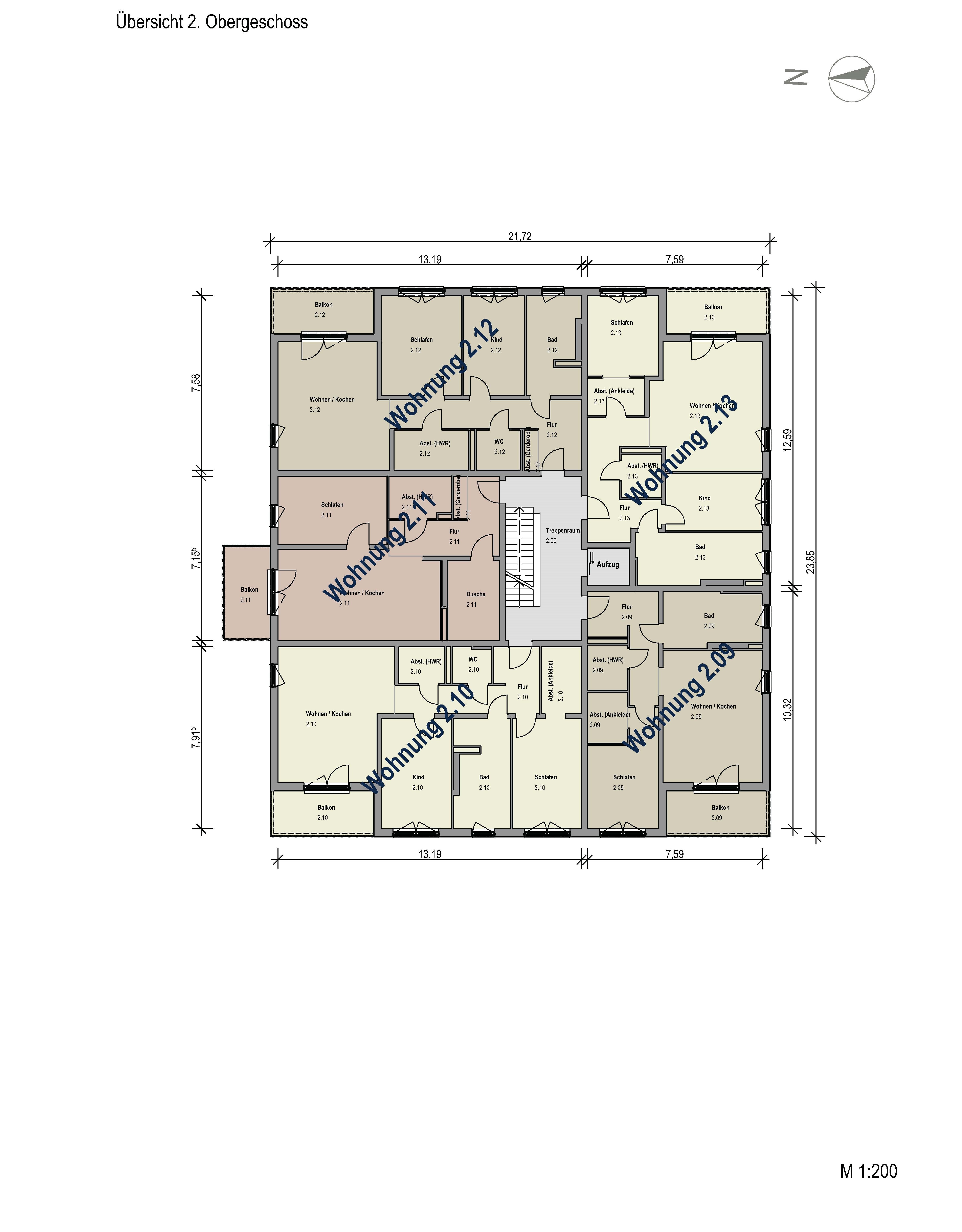 Im 2. Obergeschoss haben wir folgende Wohnungen zum Kauf im Angebot: