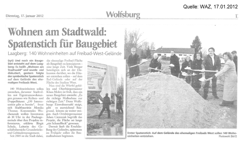 Und noch ein Baugebiet entsteht auf dem Laagberg: Es heißt "Wohnen am Stadtwald" und wurde viel diskutiert, gestern folgte der symbolische Spatenstich auf dem Gelände des ehemaligen Freibads West.