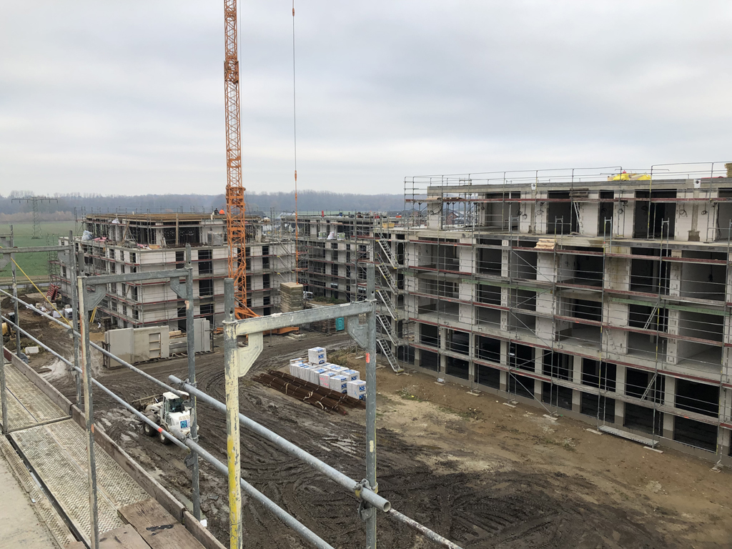 Vollbild Die Rohbauaktivitäten sind im vollen Gange und die Gebäudekörper nehmen langsam Ihre Kubatur an. Alle Bauarbeiten verlaufen planmäßig und viele Anfragen von Kauf- und Mietinteressenten erreichen unsere Vertriebsbüros in Braunschweig und BS-Lamme.