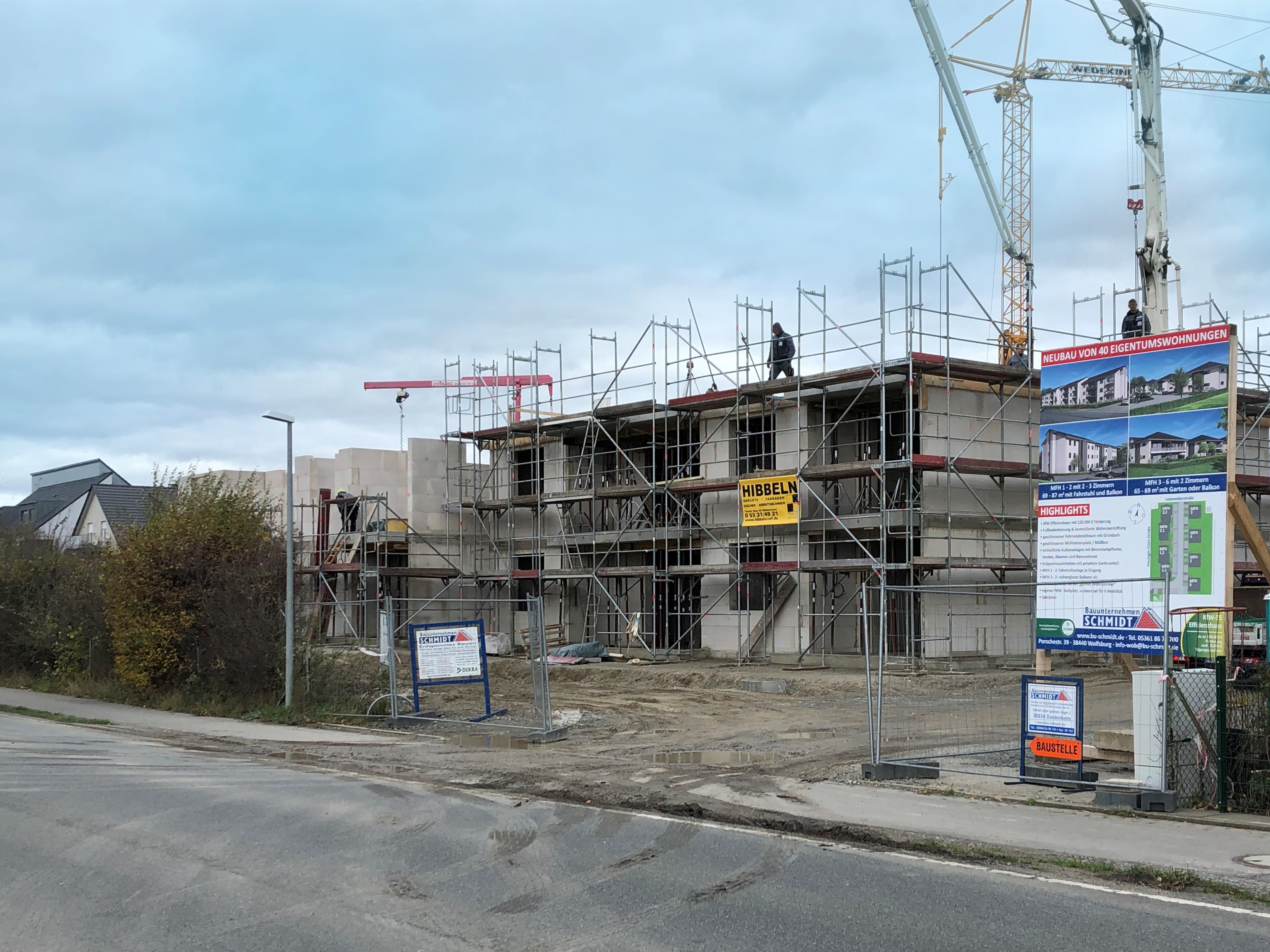 Auf unserer Baustelle in Fallersleben läuft alles nach Plan. Und dass Sie genauso gespannt sind, wie wir, was als Nächstes passiert, merken wir an den vielen Anfragen, die uns erreichen. Wir freuen uns über die Anrufe, Besuche und die damit verbundene Nachfrage nach Wohnungen in diesem Baugebiet. Leider können wir Ihnen aber aktuell noch nicht viel mehr verraten, als dass was Sie bereits auf unserer Projektseite https://www.bu-schmidt.de/projektierung.php oder auf dem Bauschild vor Ort erlesen können. Registrieren sie sich deshalb unbedingt online über diesen Link https://www.bu-schmidt.de/details.php?id=497&k=P, somit erfahren Sie automatisch als Erstes, wann wir mit dem Vertrieb starten werden. Die Benachrichtungsvormerkung bis zum Vermarktungsstart ist selbstverständlich kostenlos. Wir weisen darauf hin, dass zunächst alle Wohneinheiten fertig gebaut werden und dann erst der Verkauf bzw. die Vermarktung beginnt. Eine Vorreservierung einer Wohneinheit ist solange leider nicht möglich, wir bitten um Verständnis. Bezugsfertig sind die Wohnungen dann voraussichtlich zum 3. Quartal 2021.