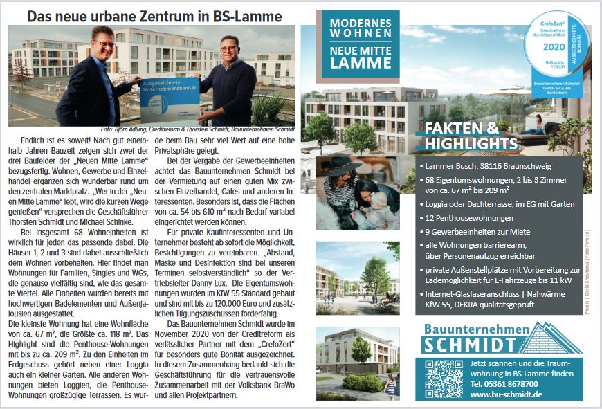 Endlich ist es soweit! Nach gut eineinhalb Jahren Bauzeit zeigen sich zwei der drei Baufelder der „Neuen Mitte Lamme“ bezugs fertig. Wohnen, Gewerbe und Einzelhandel ergänzen sich wunderbar rund um den zentralen Marktplatz.
