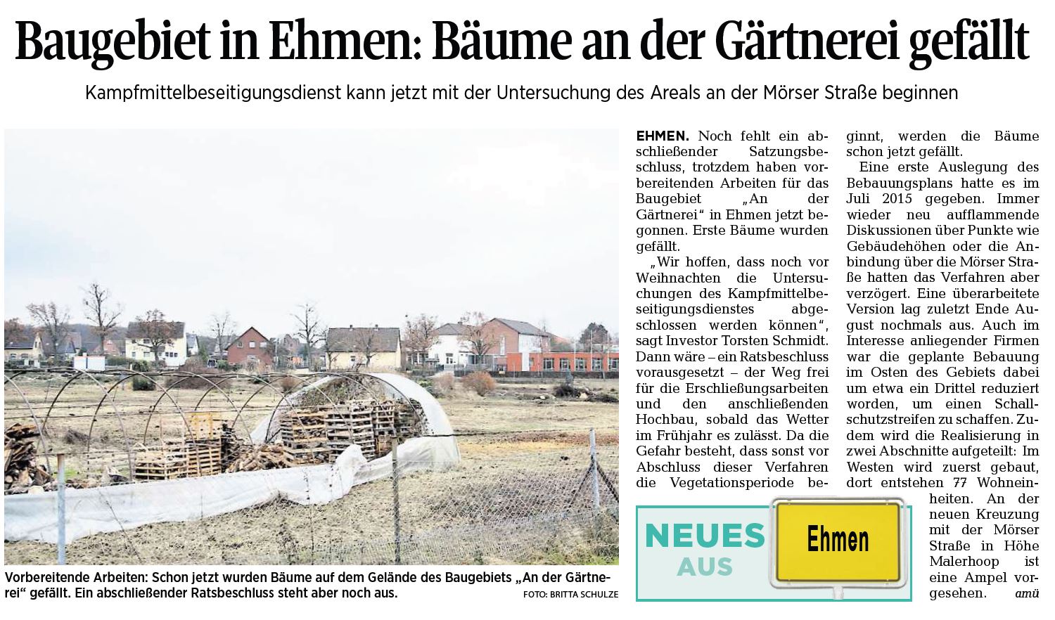 Mit dieser Nachricht möchten wir alle Interessenten darüber informieren, das lediglich die vorbereitenden Baufeldräumung begonnen hat!