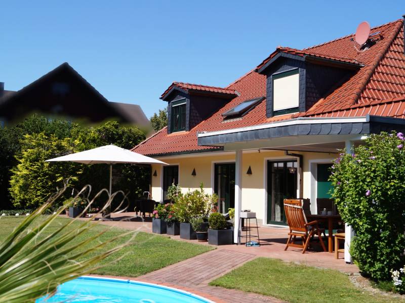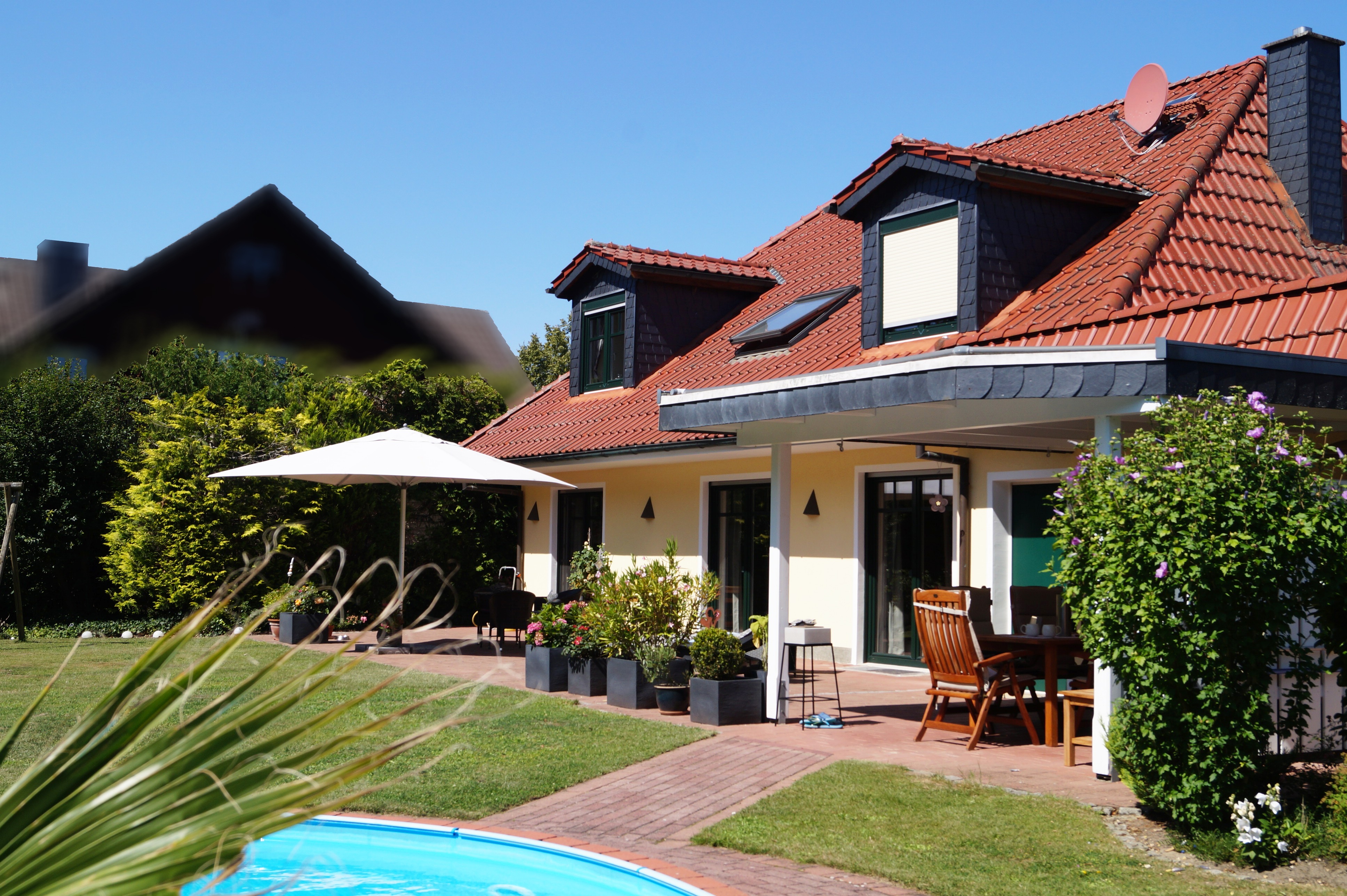 Ein Zuhause zum Ankommen und Wohlfühlen in einer ruhigen Wohngegend in Wolfsburg-Neuhaus, wo der private Garten direkt an den weitläufigen