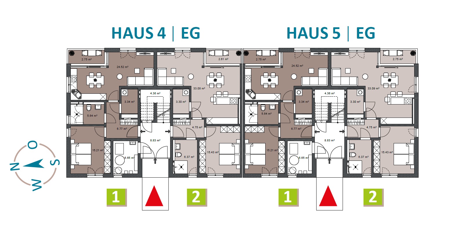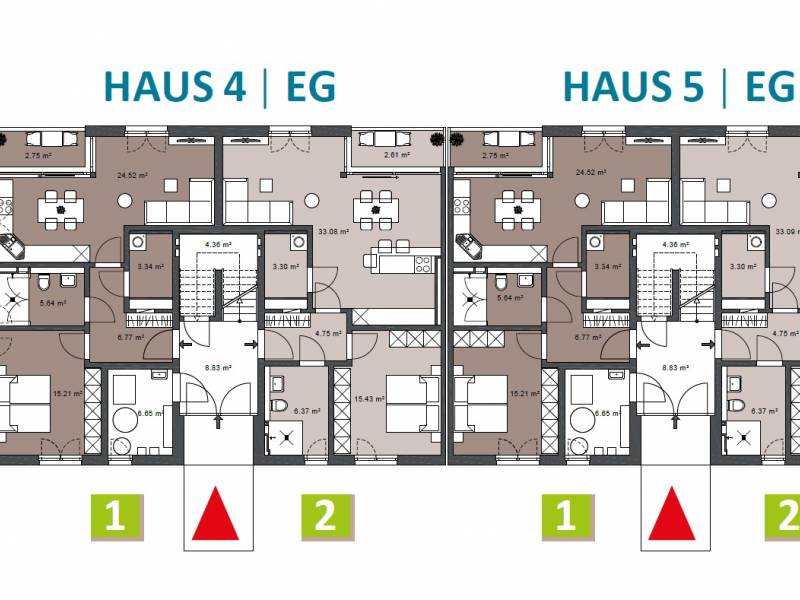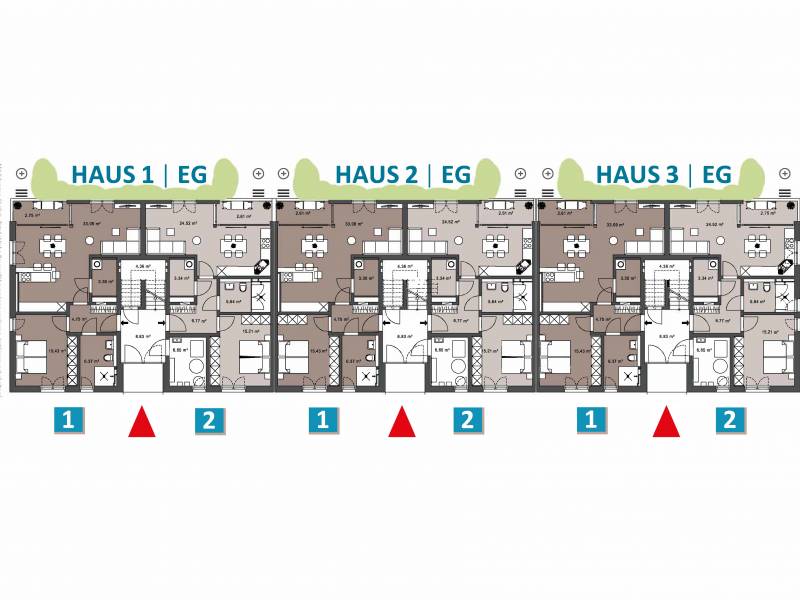 Zweizimmerlösungen von ca. 58 bis 65 m² Wohnfläche,